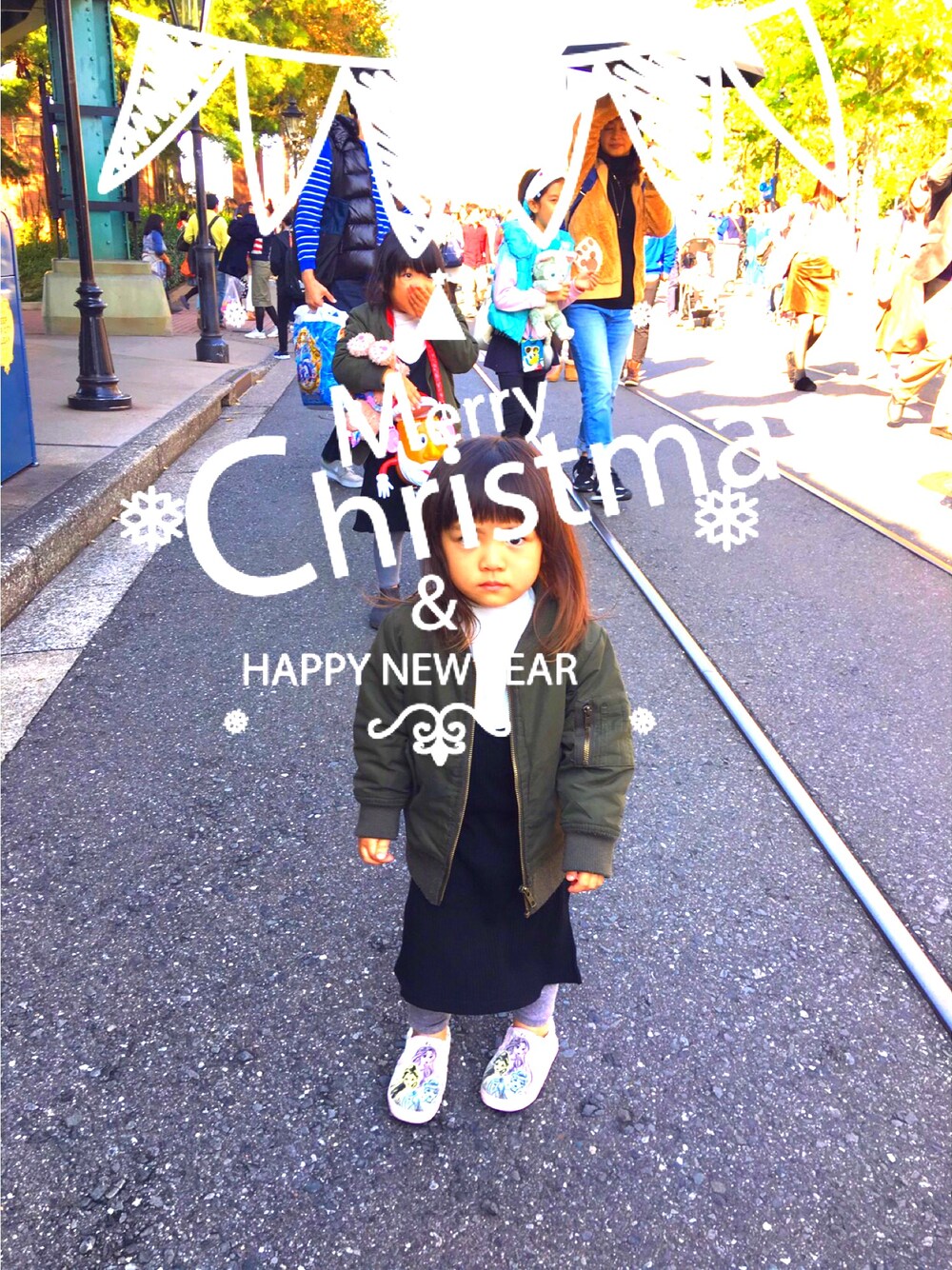 XmasDisneyにいってきました🔸🔶🔶 次女のkaです♡後ろでポップコーン頬張ってるのが姉のmiです。 おそろコーデでした♡