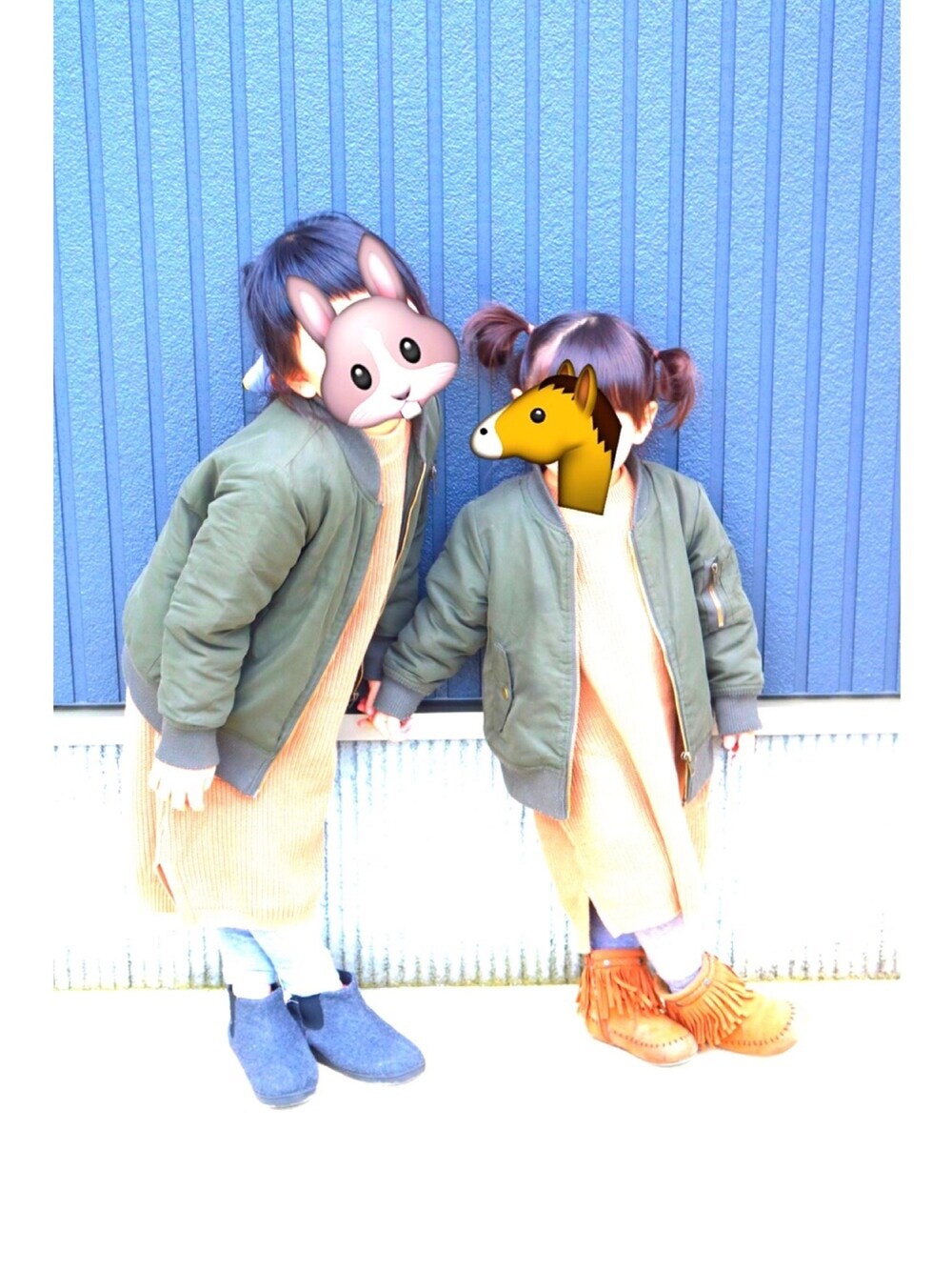 姉妹おそろコーデ👗👗👗 子どもの個性が奪われるように、親の好きな服をおそろで着せてます。反省しつつ、やっぱり姉妹おそろは可愛い❤️❤️❤️ 休日限定なので、平日の保育園は子どもの好きな服にしてますよ!