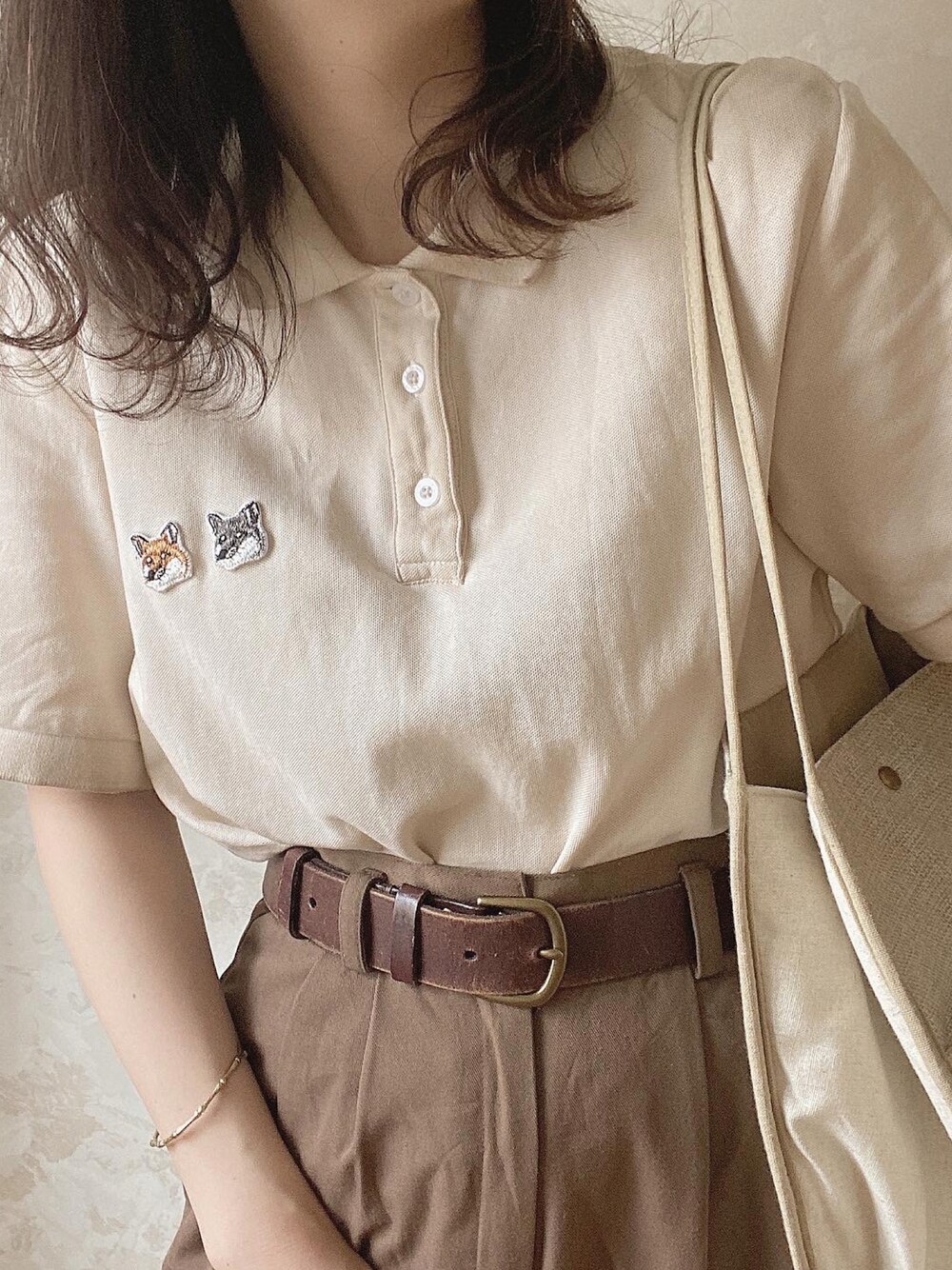 🥮 𝑜𝑟𝑖𝑔𝑖𝑛𝑎𝑙 𝑚𝑎𝑖𝑠𝑜𝑛 わたしはポロシャツ派 ベージュが好きなので コーヒー染めしーたよ! 𝑚𝑖 ☕️🦊