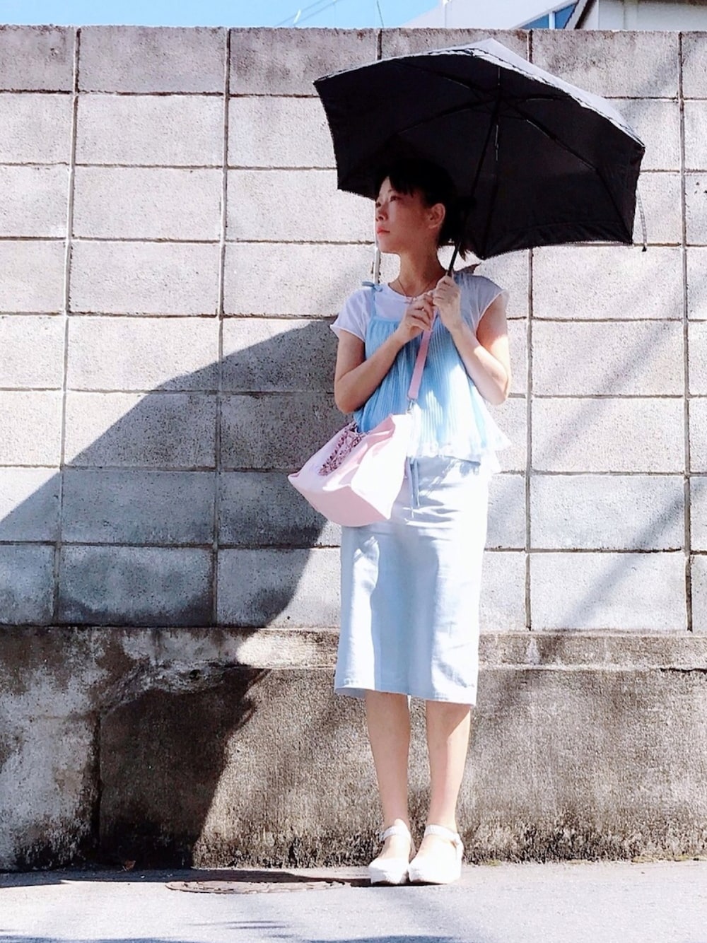MILKのランジェリーなプリーツキャミがかわいい♡ ひものところにファーのポンポンついてるの🐰 (ちょうど手で見えないけど…) 水色に水色合わせてみたよ 暑かったこの日は宮本から君へを見てきました 痺れたー 2019.10.2