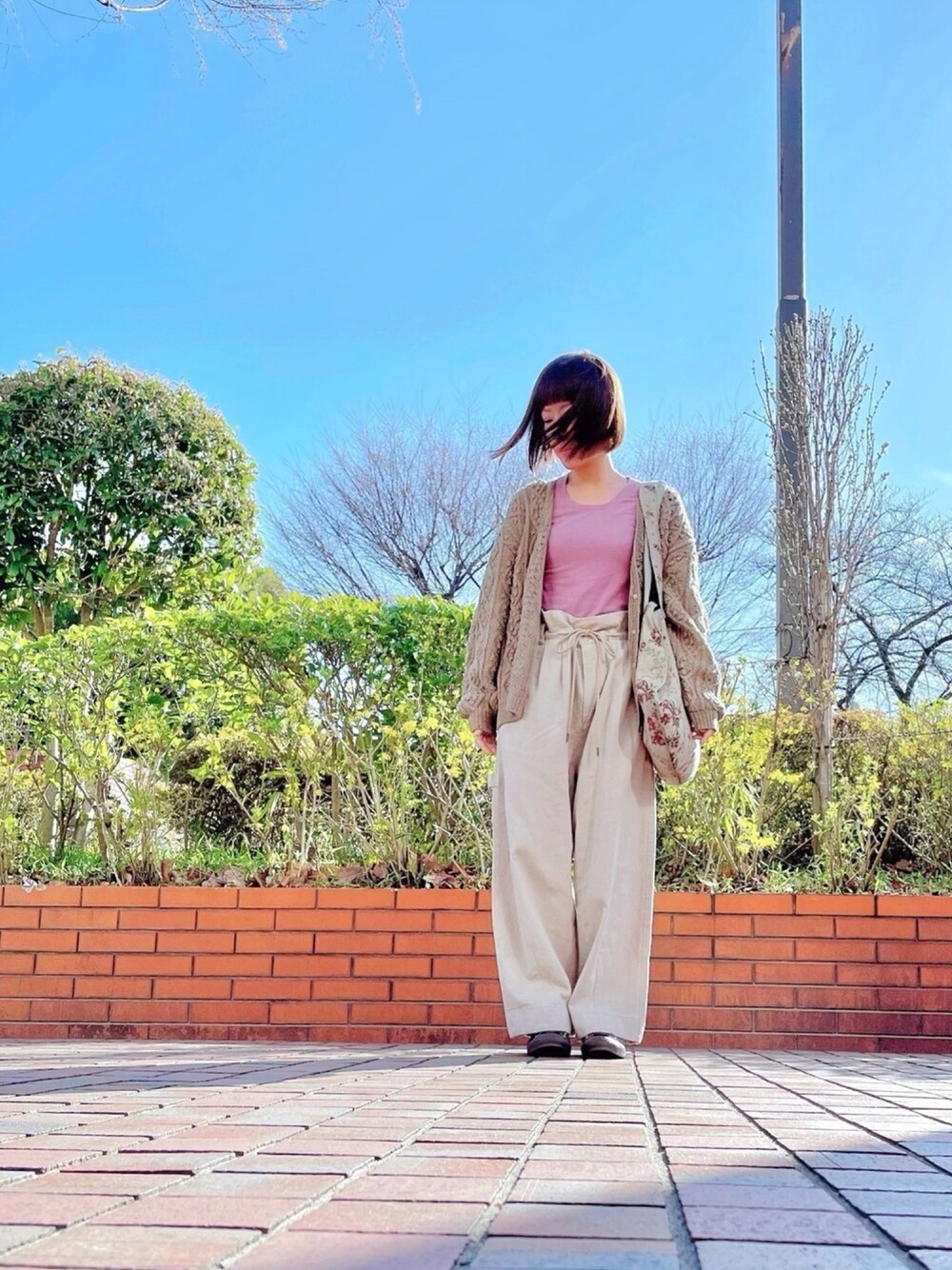 美容院帰り🚶♀️ リネンパンツ快適〜♬ 春はリネンのもの着たくなる とんかちパンツは色がどれも捨てがたくてセールで2色買いしたよ! あったかくなるまで待ってたチョコレート色のコンバース今日初めておろした のに いつもの道工事中で規制されてて、 コンクリートまだ乾いてないとこ通らされて靴底コンクリートこびりついた( ꈨຶ ˙̫̮ ꈨຶ ) 泣きたい
