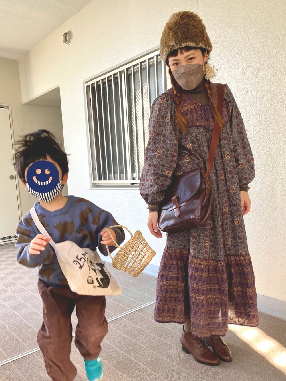 お気に入りすぎる PURのワンピ着て 名古屋アンティークマーケットへ♩ 毎年楽しみにしているイベントです。 息子くんにはカゴを持たせて どんぐり拾いに行こうとそそのかし。。笑
