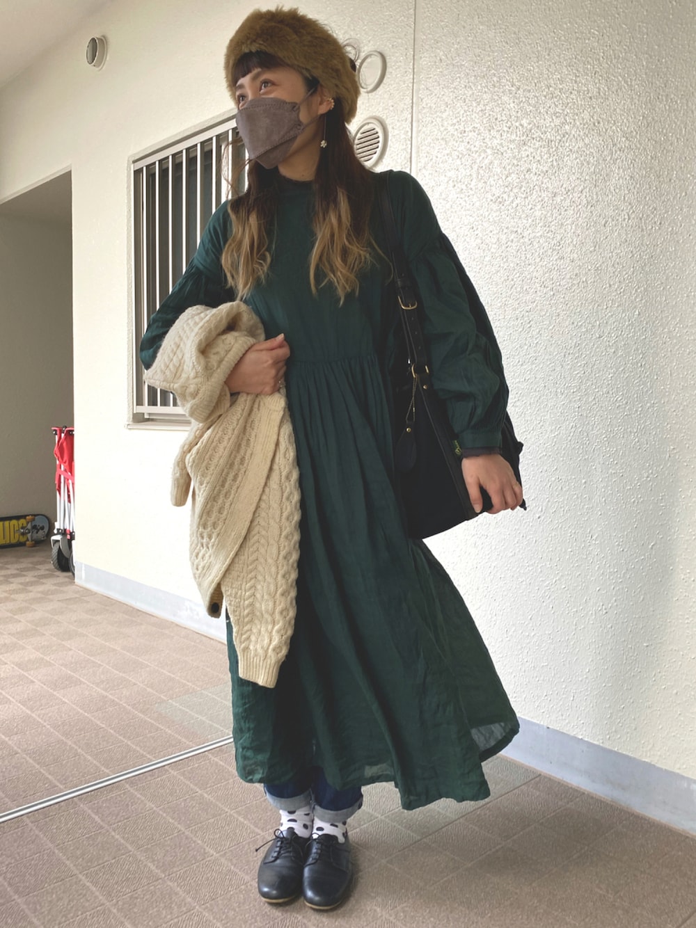 Merry Christmas. ichiのワンピース。 ふわっとしたお袖に 一目惚れです。 今週グリーン系のワンピース 3回も着てる笑