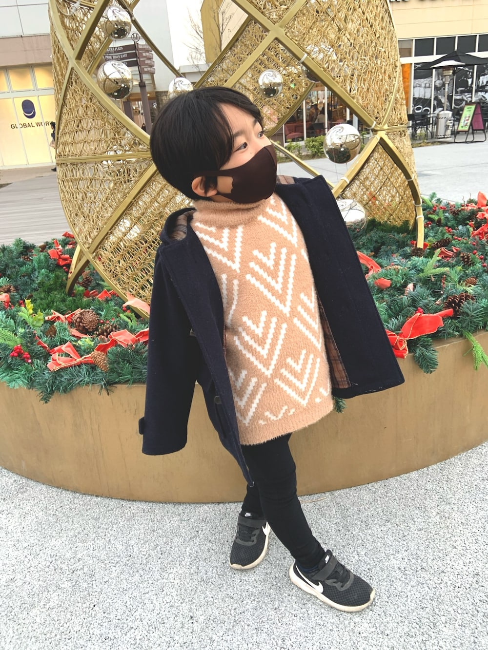 保育園帰りのため靴残念。汚 久しぶりにハイネック着せたら 気になって気になって 引っ張る。伸びる。ちーん