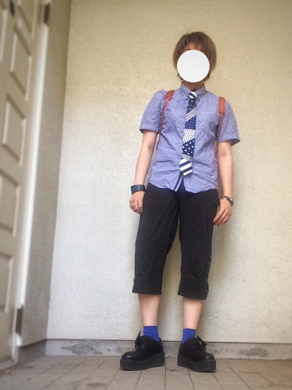 最近あんまやんないマニッシュコーデ。ネクタイがだいすき。