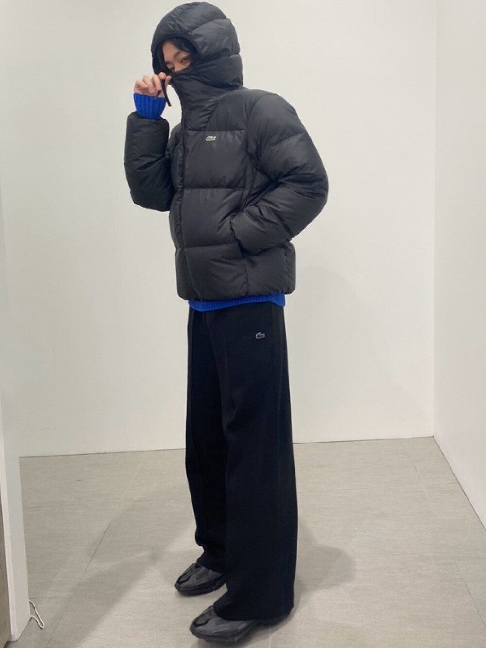 midnaito(LACOSTE 阪急西宮ガーデンズ店)のダウンジャケット/コート「撥水 バックステッチ スタンドカラー フーデッドダウンジャケット」を使ったコーディネート