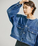 mimiのデニムジャケット「軽やかGOODデニムノーカラージャケット/132424」を使ったコーディネート