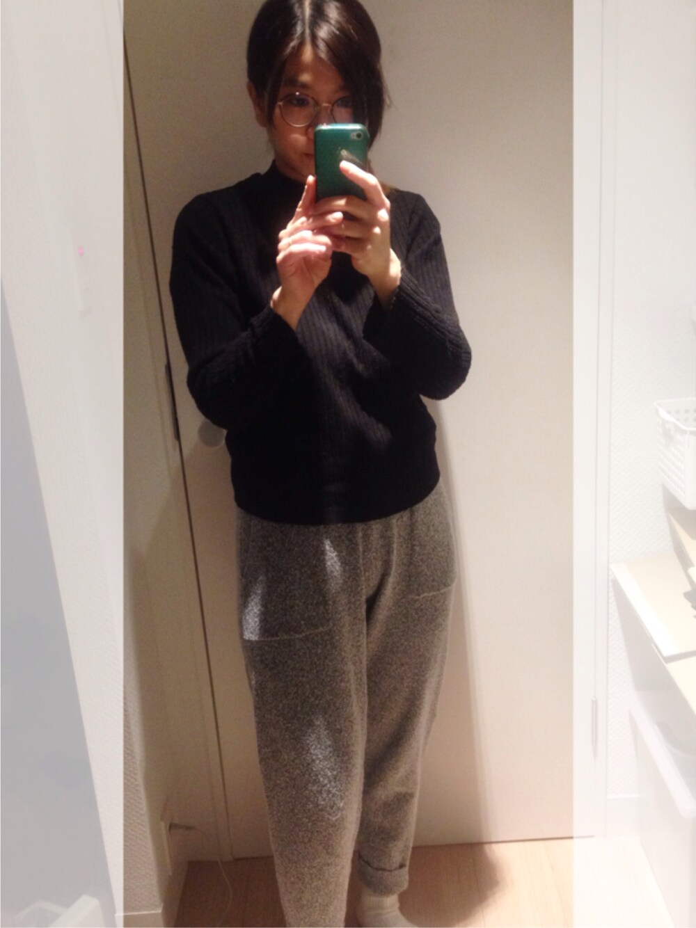 GUのニットパンツはセットアップで買いました🎵かなり楽チン〜 今日は寒すぎて近所のスーパーしか行かなかった😲