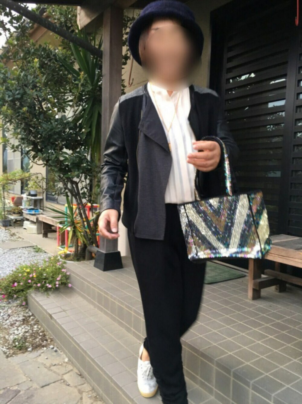 今日はぐっと冷えました😨 ノーカラージャケットが大活躍です。 押さえた色合いなので、バック👜は✨ピカピカ✨派手にしました😝 いいね👍ありがとうございます。まだまだですが、これからも覗いて下さいね💓