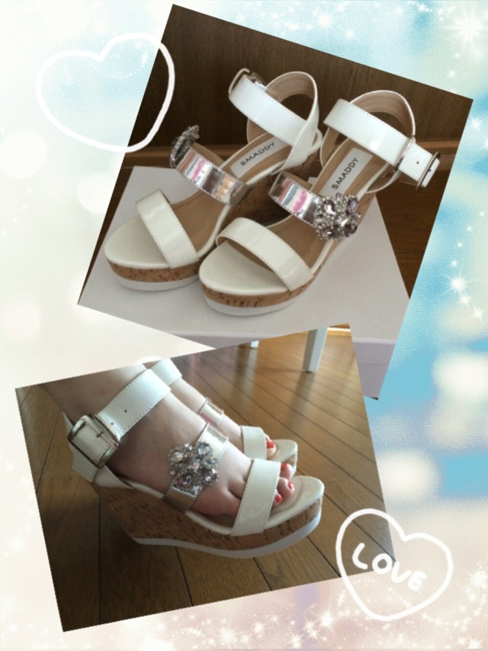 予約していたsmaddyのサンダルが届きました♡ずっと楽しみに待っていた甲斐があってすごく可愛い!!(;_;)♡ ビジューは取り外しできます。 サイズも大きいかな?と思ったけどぴったりで色違いも欲しいなぁと思いました(*^^*)