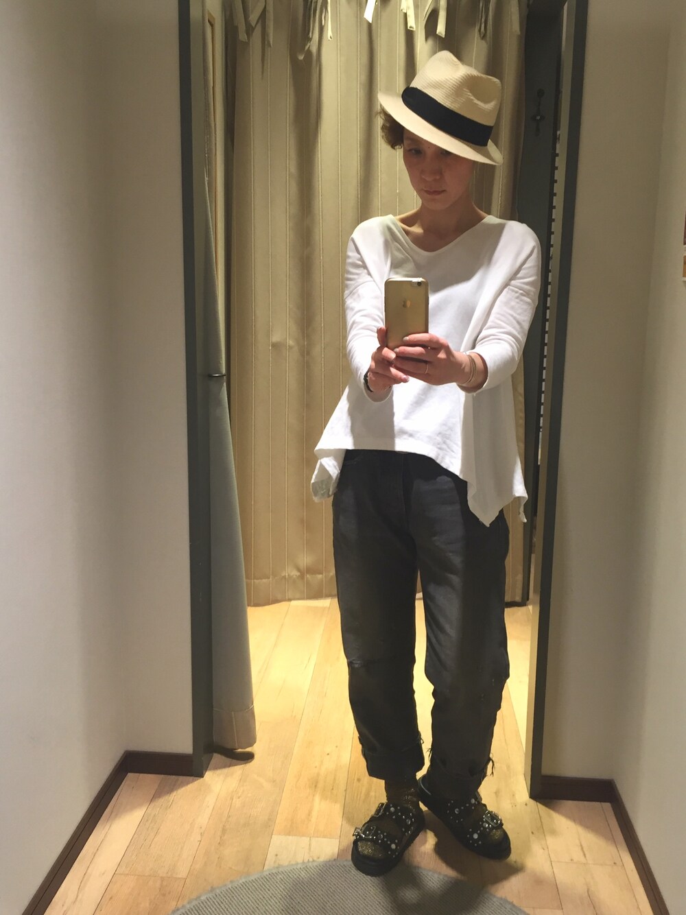 midoriのTシャツ/カットソー「【GIZA COTTON】アシンメトリーVネックプルオーバー」を使ったコーディネート
