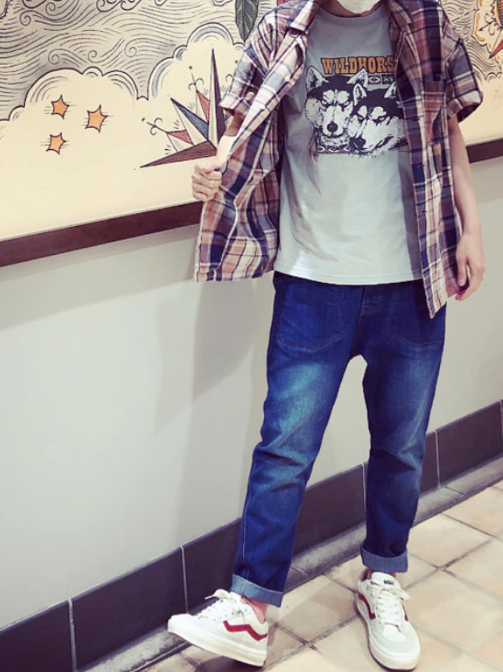marippeのTシャツ/カットソー「天竺 パウダー加工 プリントTシャツ」を使ったコーディネート