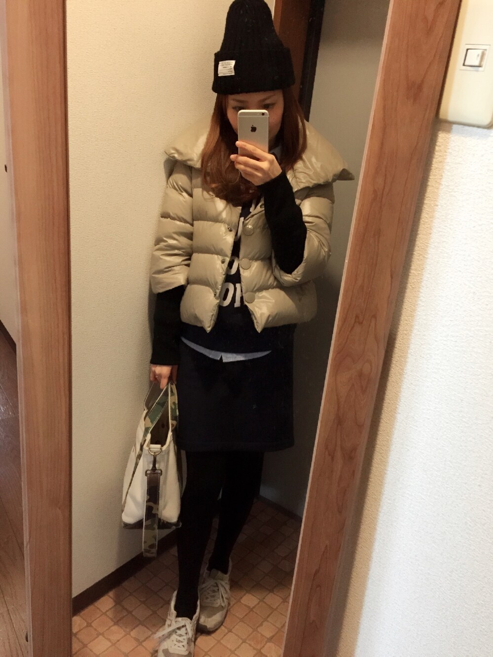 去年買ったユニクロのボアスカートほんと気持ちいい♡トップスもネイビーで合わせてセットアップ気分😘😘