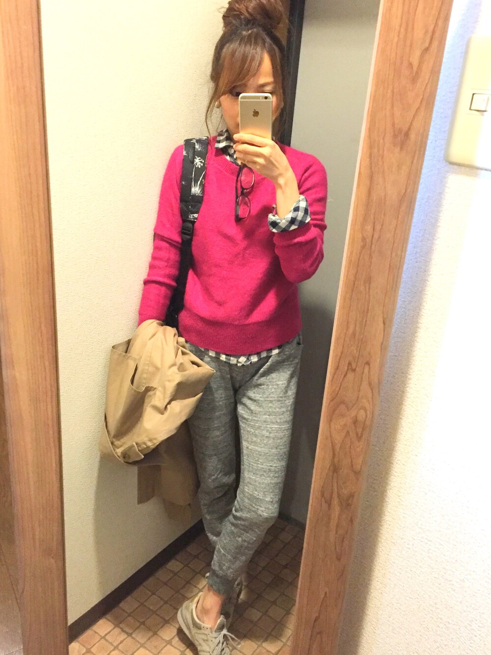 ビビットピンクは昔から好きな色❤️ ピンクとグレーの組み合わせが好き🙋💯 今からホットヨガなので、ラフコーデでいってきまぁす💨