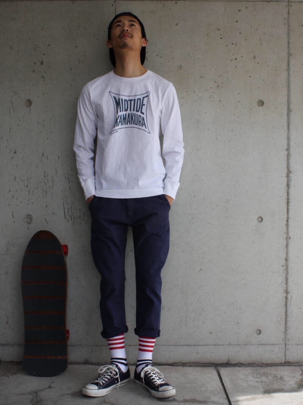 MIDTIDEkamakuraのTシャツ/カットソー「mIDTIDE KAMAKURA×Jim Pfillios ロンTEE」を使ったコーディネート