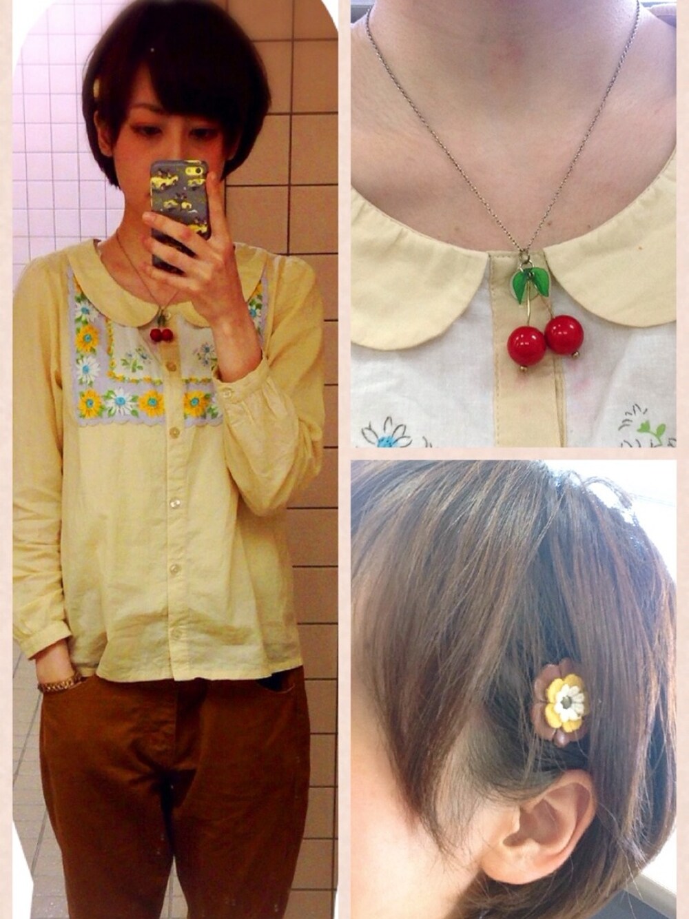 ペーターみたいなコーデ笑 ブラウス*パラビオン チノパン*pou dou dou お花ピン*古着やさん