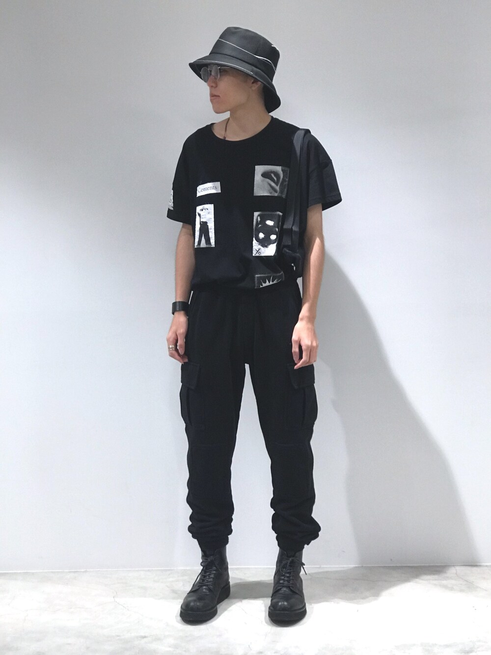 カーゴスウェットにブーツを合わせたかった!!! Tシャツのパッチと肩まわりの空き、ショルダーバッグの肩掛けイケてる(^o^)