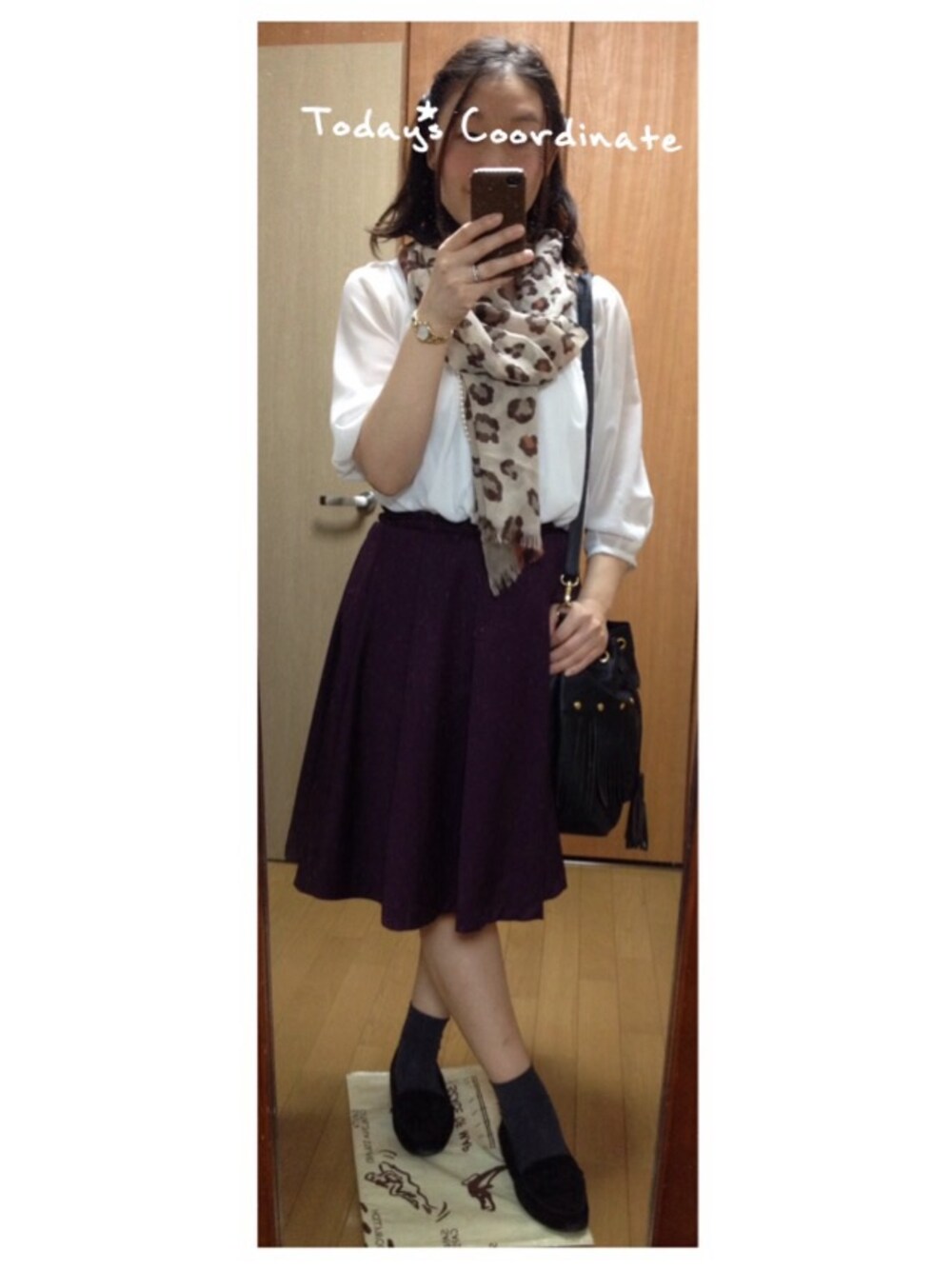 ミエのストール/ショール「ヒョウ*ムジコンビストール」を使ったコーディネート