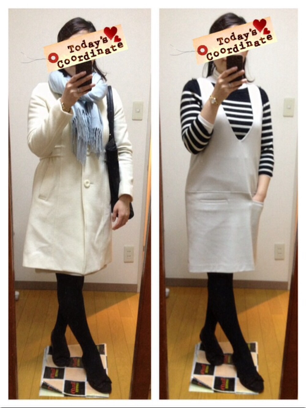 今日はひな祭りパーティーなので 過ごしやすいワンピースに ボーダーニットを合わせました。 ニットはBEAMS ワンピースはbeams lights コートはスピックアンドスパン