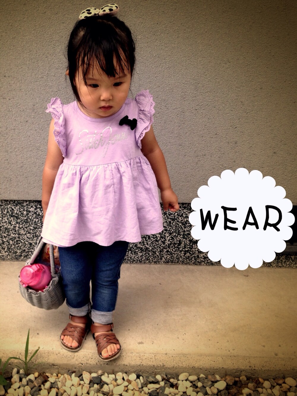 今日はばあばとお出かけだったので、珍しくガーリーコーデ♡ 本当は違う服着てたけど、ばあばに「もっとかわいい服着せて!!」と言われお着替え〜(笑) ガーリーだけど前髪が汗ではりついてるあたりはオージー。