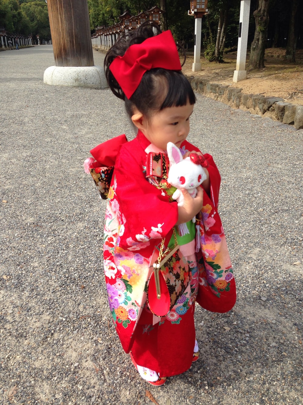 大御所演歌歌手ではありません。 ムチ子の七五三です。 先々週に行ったのに今頃UP💦 小窓には3年前の姉さんの七五三の時の写真。この時ムチ子はお腹の中だったなぁ🚼
