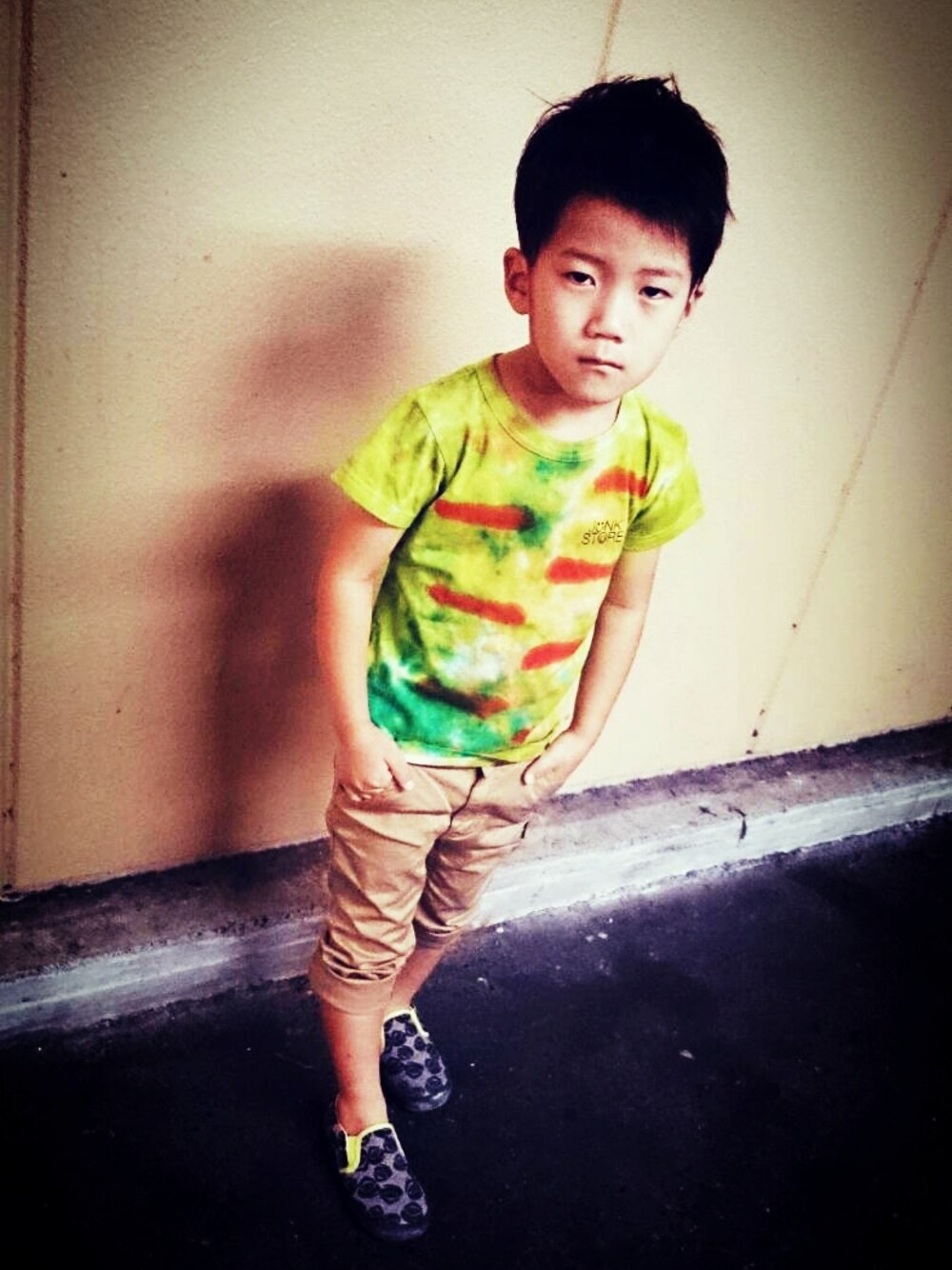最近自分で服を選ぶように( ´罒`*)✧" タイダイTシャツお気に入り♡ 怒ってる?? まぁいっか~ぁ…笑