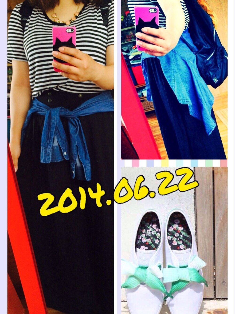 初投稿です!^ ^ トップス:ユニクロ デニムシャツ:ユニクロ スカート:LEPSIM LOWRYS FARM