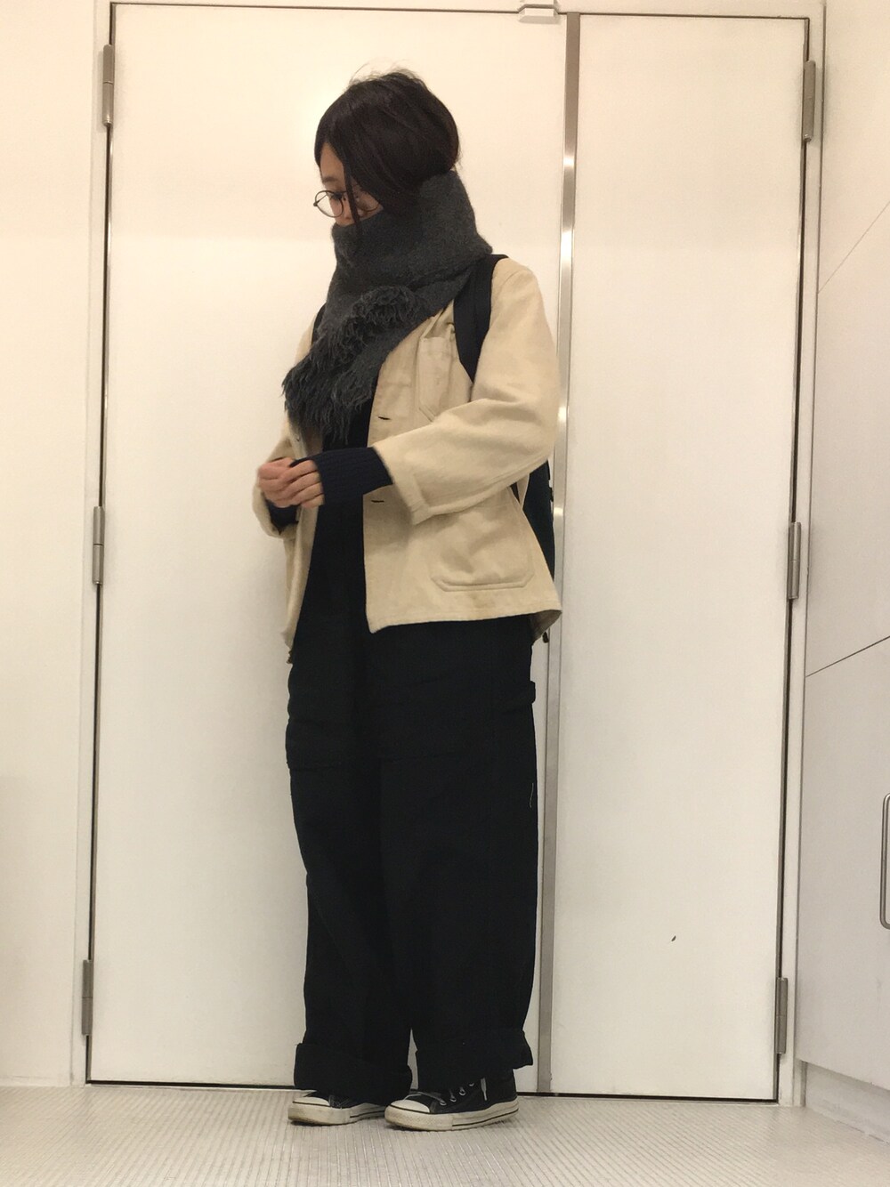 オーバーオール kaval インナーのニット ファブリケアンプラネテール ジャケット ビンテージ * なんでもデカ×デカコーディネート。