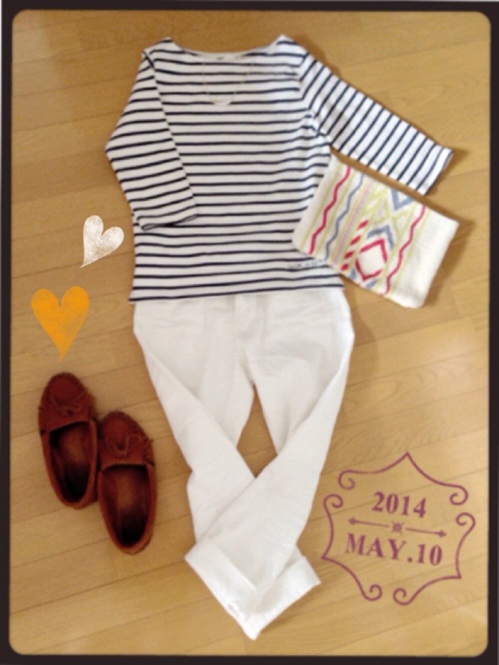 ★トップス SEVENDAYS=SUNDAY ★パンツ GU minneで買った コットンパールネックレスは シンプルで使いやすいので♡ やっぱりボーダーなわたし(๑・౩・๑) せっかくあったかいし、 白で爽やかに♡ これからおでかけ( ・◡・ )♫