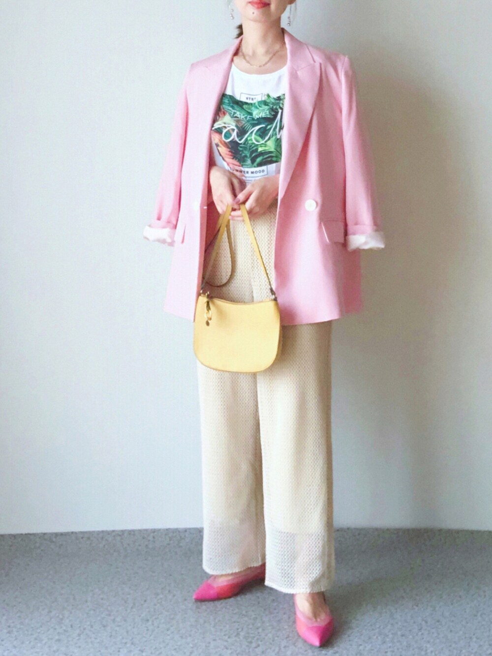 いつも[いいね][お気に入り]ありがとうございます♪ 夏のセールでピンクのジャケットを買いました。 クローゼットを整理しているとほとんどモノトーンしかなくて、今はアースカラーが流行ってるけど、でも世の中にたくさん色があるのにモノトーンしか着ないなんてもったいないなと思いました。 なので、今年の夏セールはカラフルの服をいっぱい買いました👗