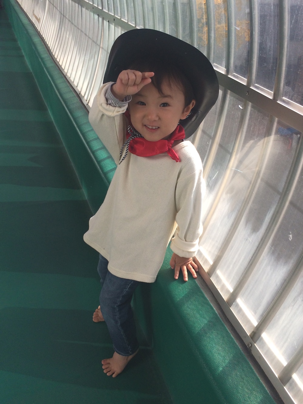 発表会の衣装。 カウボーイになりました✨🤠 白のシャツ指定だったけど、ロンTの方が着回しできそうなので購入🎉裾のところが丸くなっててかわいぃ❤️