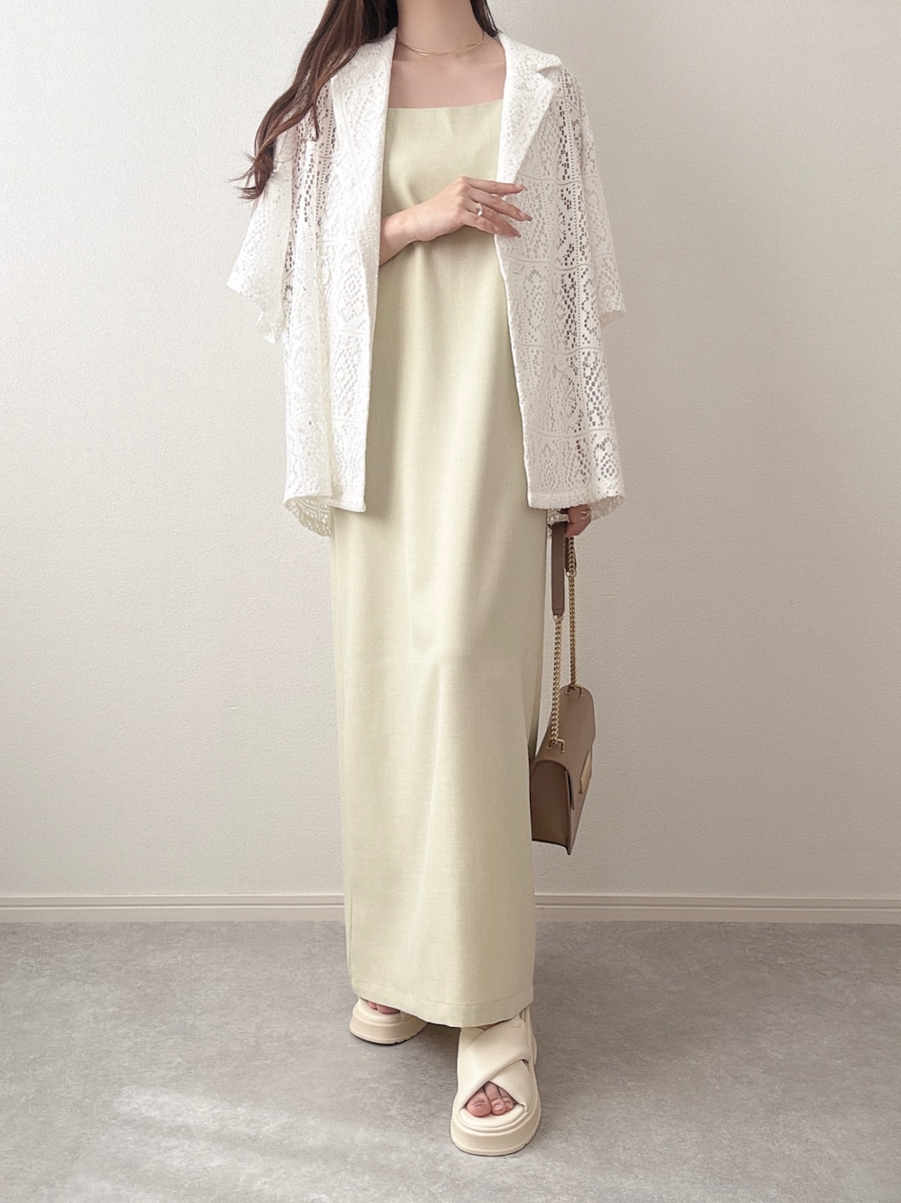 大好きなアイボリー×ベージュコーデ🤍 オススメのワンピースは綺麗なIラインシルエットで 細見えします!!🔥