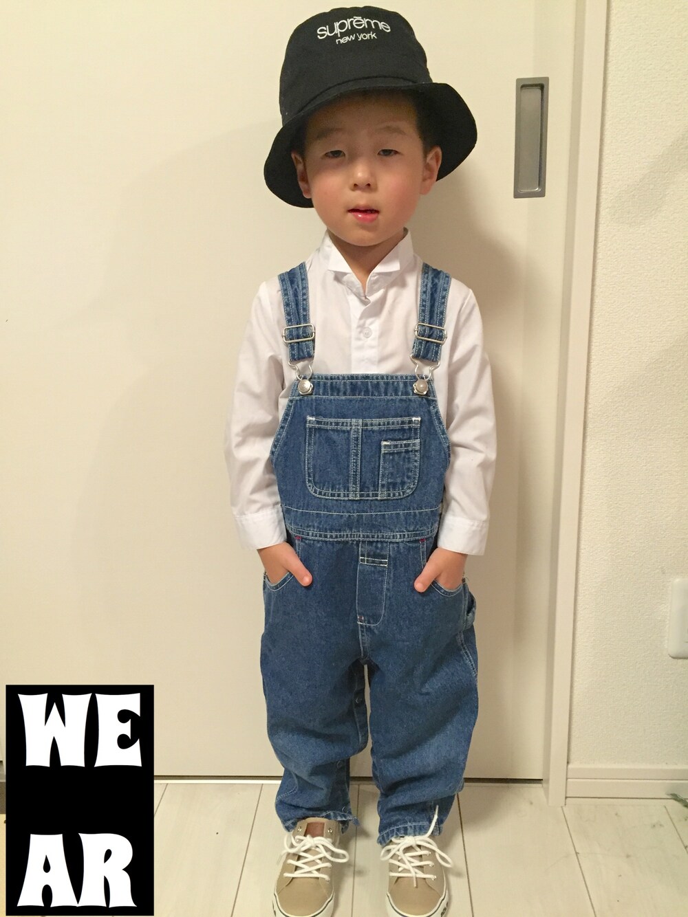 ハット Supreme ワイシャツ GAP オーバーオール GAP 靴 ラルフローレン シンプルにSupremeを合わせるのがオシャレな見せ所〜 でも、でも、でも 牧場さんっぽいかな??笑