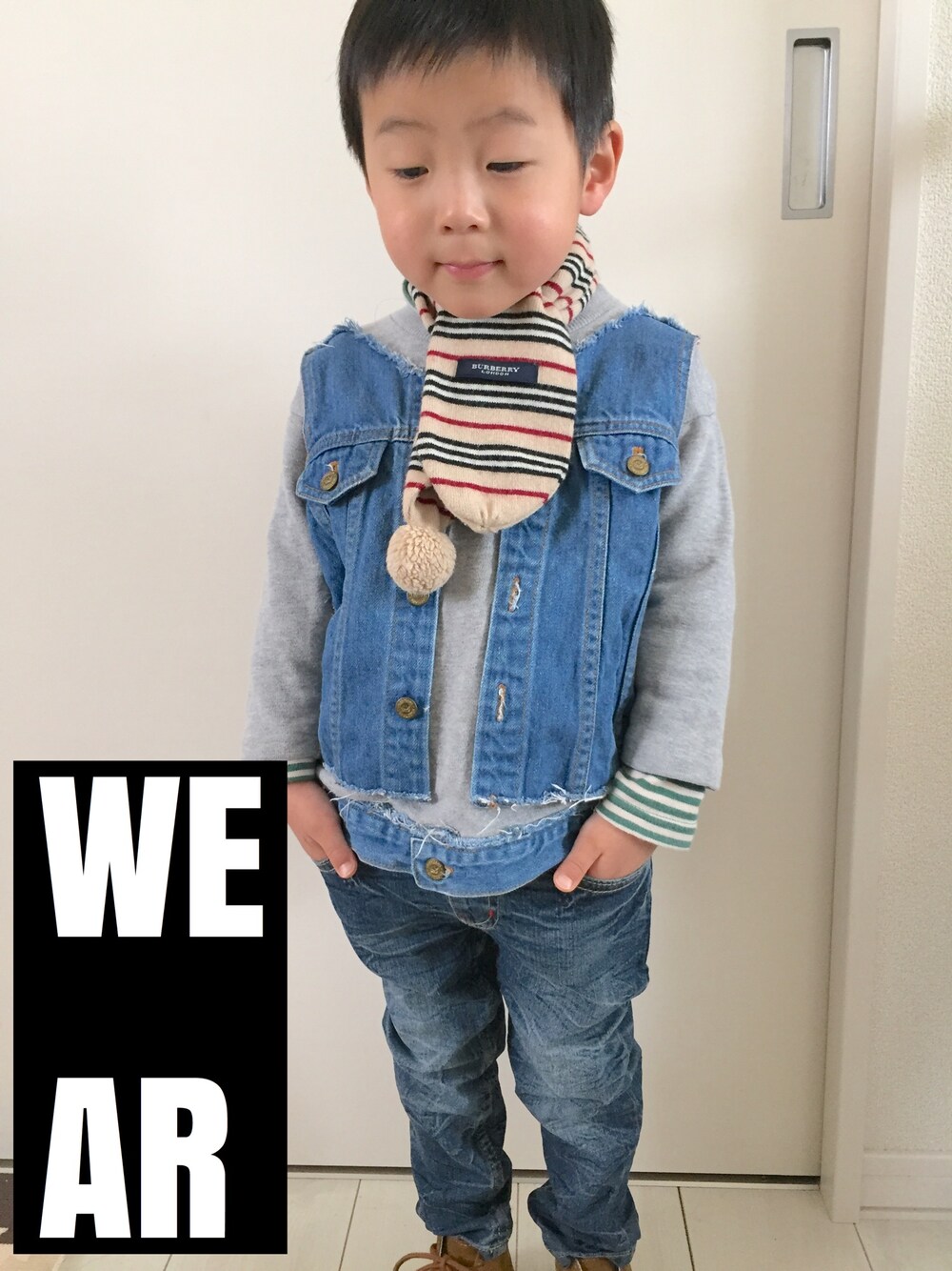 デニムonデニムでのコーディネート(o^^o) お気に入りのCHUBBYGANGのデニム生地とトレーナーがカッコいい作りになってまーす 首元も寒くないように、マフラー^ ^ 帽子も被らせた方が良かったかな・・・ 買い物に行ってきます〜