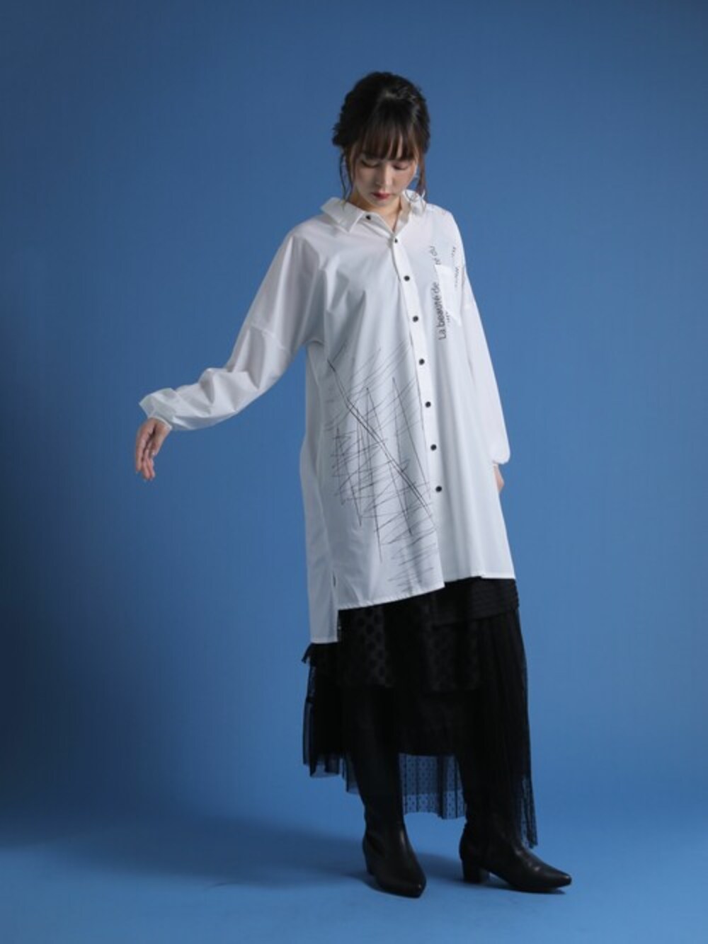 osharewalker staff(osharewalker ZOZO店)のシャツ/ブラウス「【廃盤】『アシメデザインプリントシャツ』」を使ったコーディネート