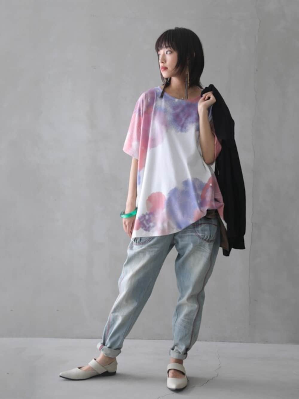 osharewalker staff(osharewalker ZOZO店)のTシャツ/カットソー「『水彩プリントドルマンTシャツ』」を使ったコーディネート