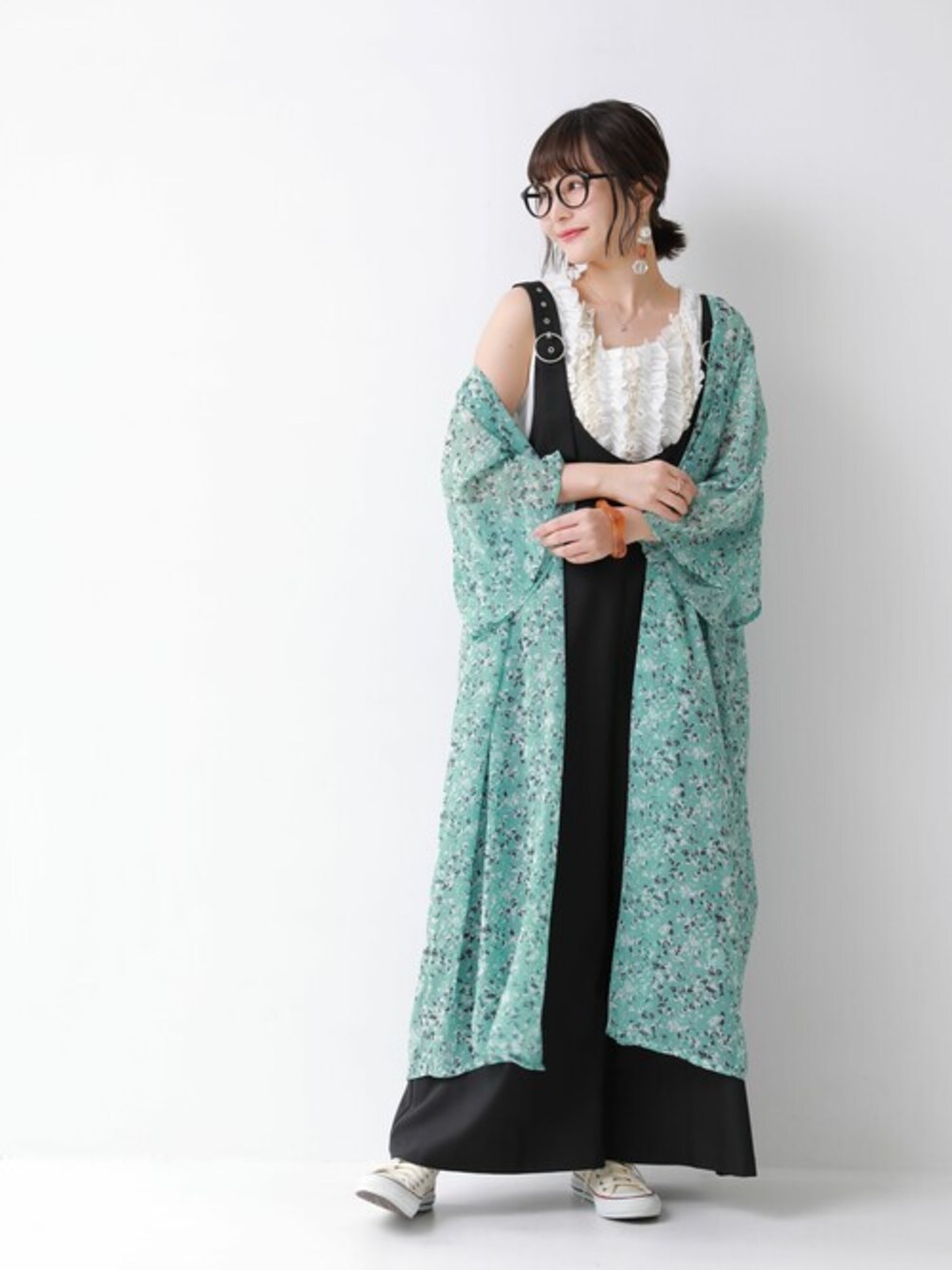 osharewalker staff(osharewalker ZOZO店)のカーディガン/ボレロ「【廃盤】『総柄ロングシアーカーディガン』」を使ったコーディネート