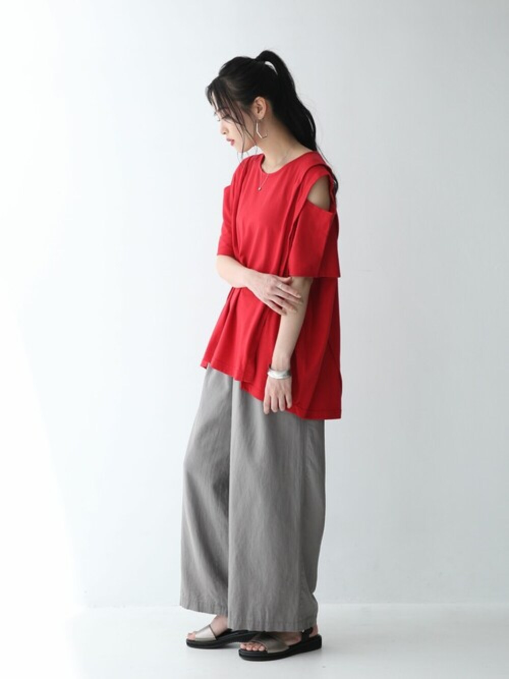 osharewalker staff(osharewalker ZOZO店)のTシャツ/カットソー「【廃盤】『オープンショルダータックTシャツ』」を使ったコーディネート