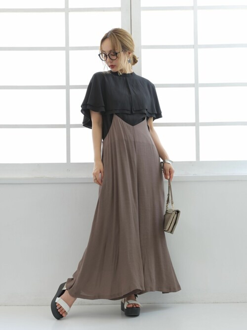 ひらり揺れるケープシルエットが目を惹くブラウス♪ スタンド襟で大人っぽい雰囲気に仕立ててくれます。 1枚で着てもカーデなどと重ねて着てもお洒落に決まるから、ロングシーズン着回し広がる♪ さらりとした肌触りの生地は、落ち感のあるキレイめ素材。 二重にあしらわれたケープカラーは二の腕も隠してくれるのが、女性には嬉しいポイントです。 M~3Lサイズ展開だからお好みのシルエットをお選びいただけます。 今、好きな物、興味あることを自由な発想で表現できる≪ n'OrLABEL ≫。 「実用性と機能性、そして遊び感覚」、多面性を楽しめるピュアでモードなデザインライン。 ドレープ感が美しい≪n'OrLABEL≫スリットケープカラーブラウスです。