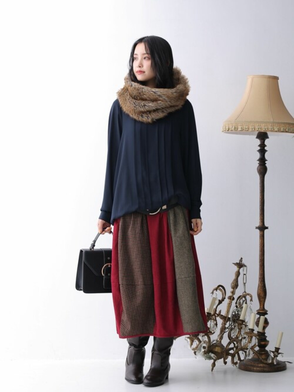 一気にお洒落感度高まる、魅惑のコクーンスカート♪ 差し色になる無地×チェック柄、季節感溢れるコーデュロイ×ツイードの、素材にもデザインにもこだわったアシメ仕様。 3種類の生地を配色で切り替えた異素材ドッキングスカートで360度お洒落魅せが実現します。 丸みを帯びたコクーンシルエットは気になる部分もカバーしてくれる。 ミモレ丈なのでパンプスともブーツとも相性が良く、シーズンムード高まるコーデを楽しめます。 お洒落なあの子は穿いている≪n'OrLABEL≫異素材配色コクーンスカートです。