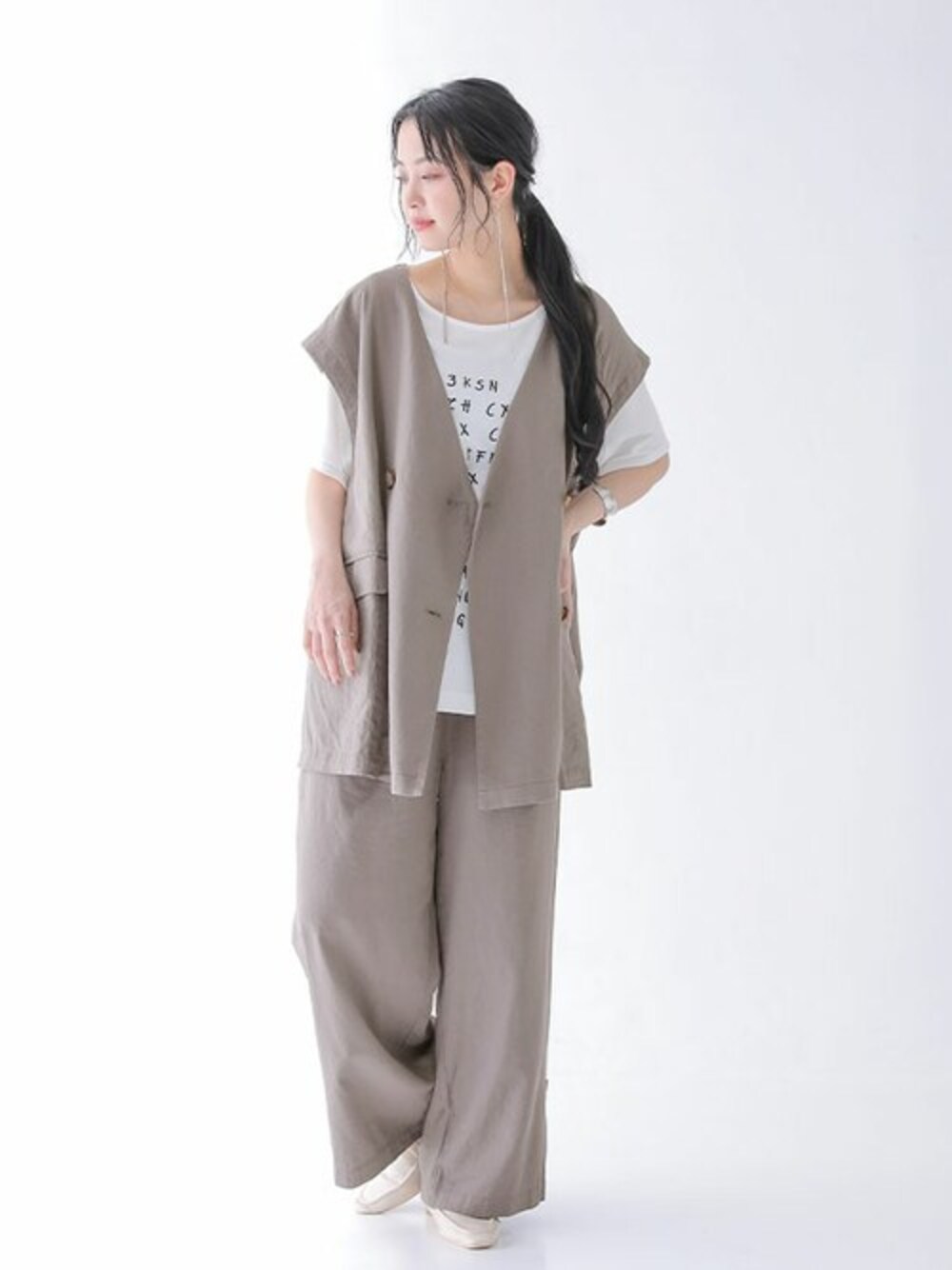 osharewalker staff(osharewalker ZOZO店)のベスト「【廃盤】『風合いリネン混ジレベスト』」を使ったコーディネート