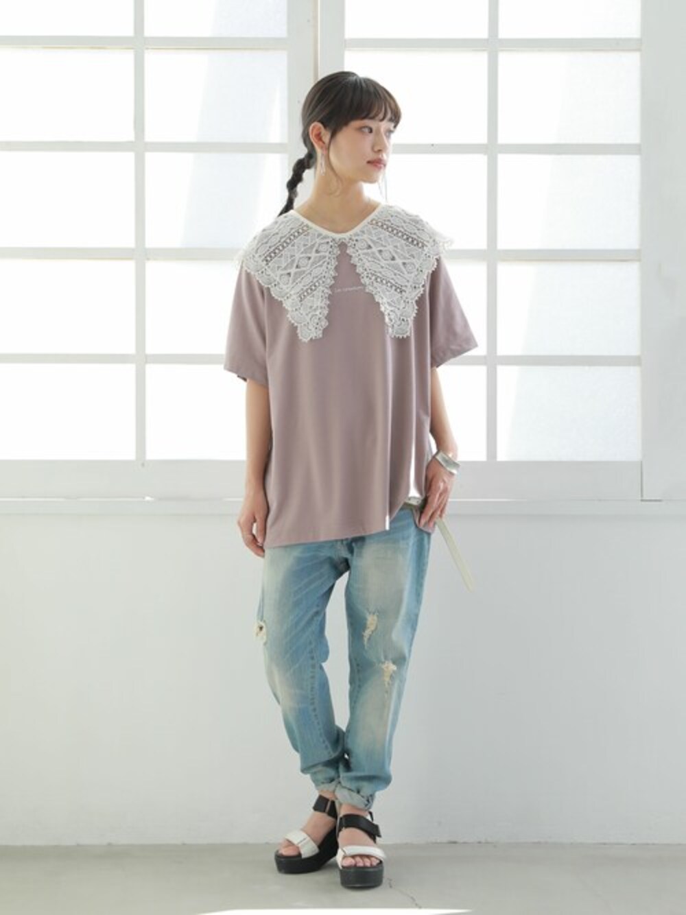 1枚でもインに着ても♪ どの角度から見てもセンス溢れる、ロゴTシャツ。 全体のカラーに合わせて色にもこだわったさりげないロゴ&タグデザイン。 さらっとコーデに取り入れやすく、こなれたスタイルを実現する大人女子にぴったりな一着です。 柔らかく心地よい肌触りが特徴の、綿混で滑らかなカットソー生地を使用。 これからの季節のお洒落に快適な着心地をお届けします。 デイリー使いに欠かせない≪n'OrLABEL≫ワンポイントロゴプリントTシャツです。