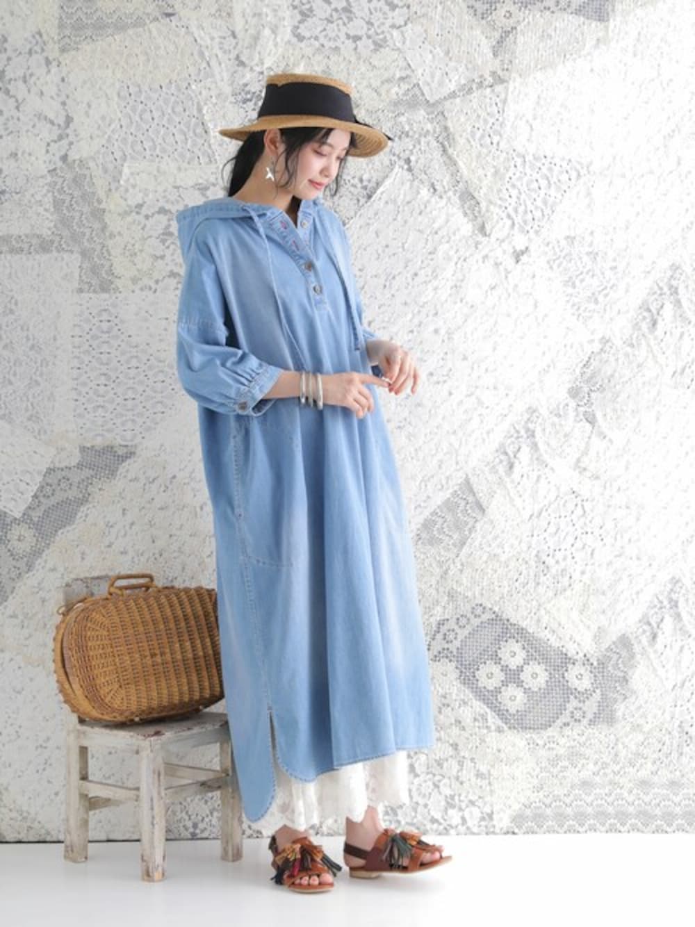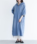 コットン100%のデニム素材で、着れば着るほどに風合いが増す。 somari imaginationの大人気シリーズの6分袖ver.デニムフードワンピ。 前後差のある着丈と脇のスリットが、重ね着をしてもバランスよくお洒落に魅せてくれる。 ギャザー入りの絶妙な6分袖で抜け感を生み出し、女性らしさをプラス。 アンティークボタンや赤色のステッチなど、細かいところにもこだわりが沢山詰まった一着です♪ 前後にブラスト加工を施したこなれ感高まるデニム生地。 薄すぎず厚すぎない、程よい生地感でロングシーズン着用いただけます。 ナチュラルにお洒落を仕立てる≪somari imagination≫デニムフード6分袖ワンピースです。