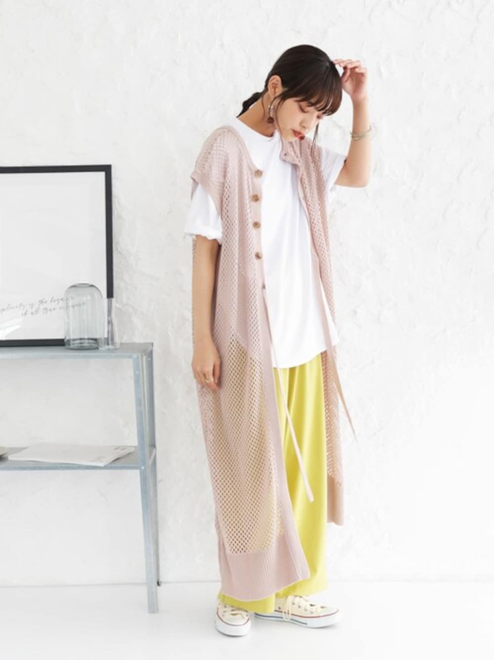 osharewalker staff(osharewalker ZOZO店)のベスト「【廃盤】『メッシュ編み2wayロングニットベスト』」を使ったコーディネート