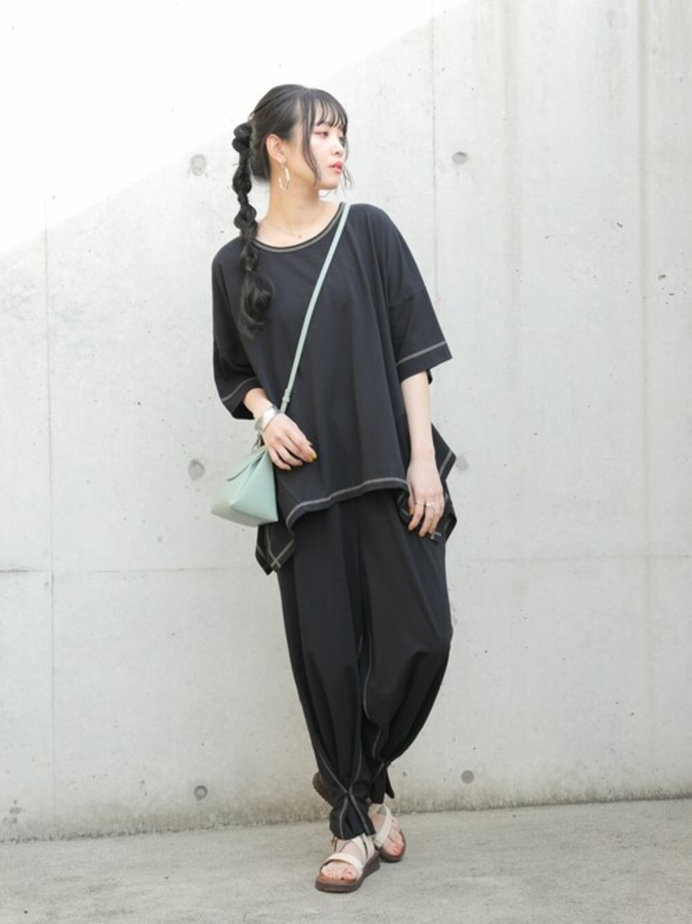 『お洒落に涼しさを纏う、ひんやり冷感Tシャツ。』 シンプルだけどお洒落魅せを叶える変形デザイン。 機能性もありながら、こなれたスタイルを作る価値ありTシャツ♪ 着た瞬間ひんやりと感じる冷感加工を施し、暑い季節も快適に過ごせる優れモノ! 柔らかく心地良い生地感の透けにくいカットソー生地だから、涼しくお洒落を楽しめます。 ゆるっとラフなシルエットに、動きに合わせて表情が出るアシメヘムラインでセンスに差をつける。 カラー毎にこだわった配色ステッチがコーデのアクセントに。 同素材のパンツと合わせれば、一気に旬顔になれるセットアップコーデが完成します♪ 毎日着たくなる快適さ≪n'OrLABEL≫ひんやり冷感カットソー変形Tシャツです。