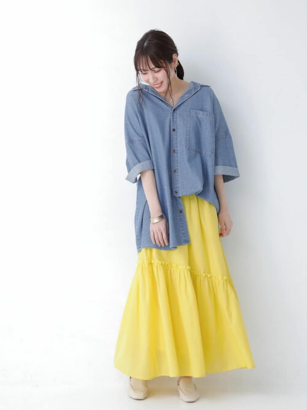 osharewalker staff(osharewalker ZOZO店)のスカート「『アシメティアードスカート』」を使ったコーディネート