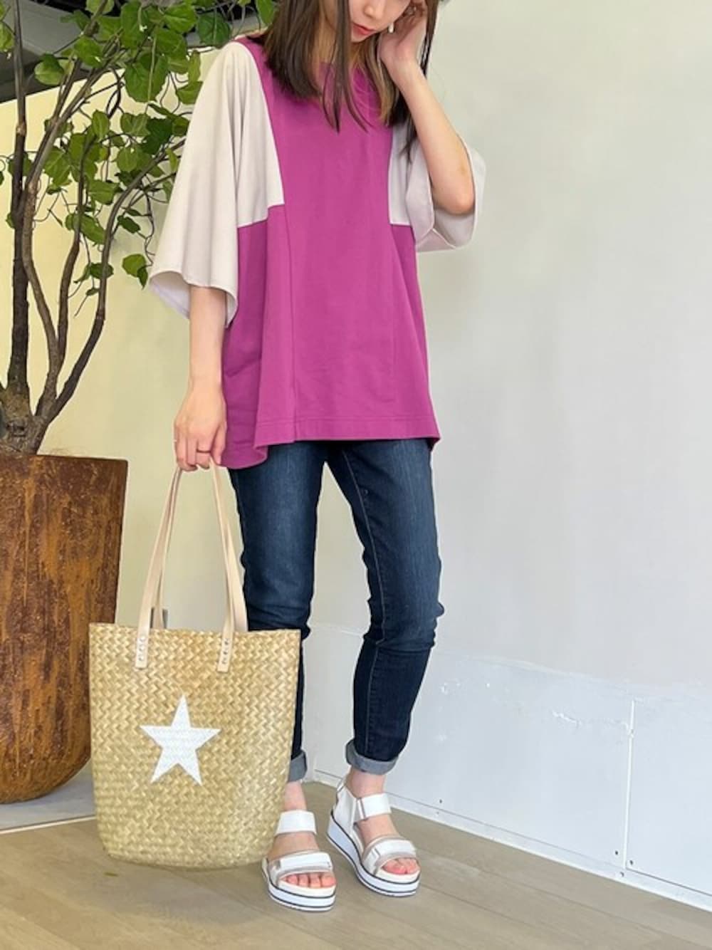 osharewalker staff(osharewalker ZOZO店)のTシャツ/カットソー「【廃盤】『異素材スリーブ配色切替カットソー』」を使ったコーディネート