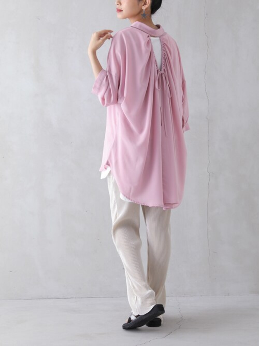 osharewalker staff(osharewalker ZOZO店)のシャツ/ブラウス「『バックオープンリボンデザインシアーシャツ』」を使ったコーディネート