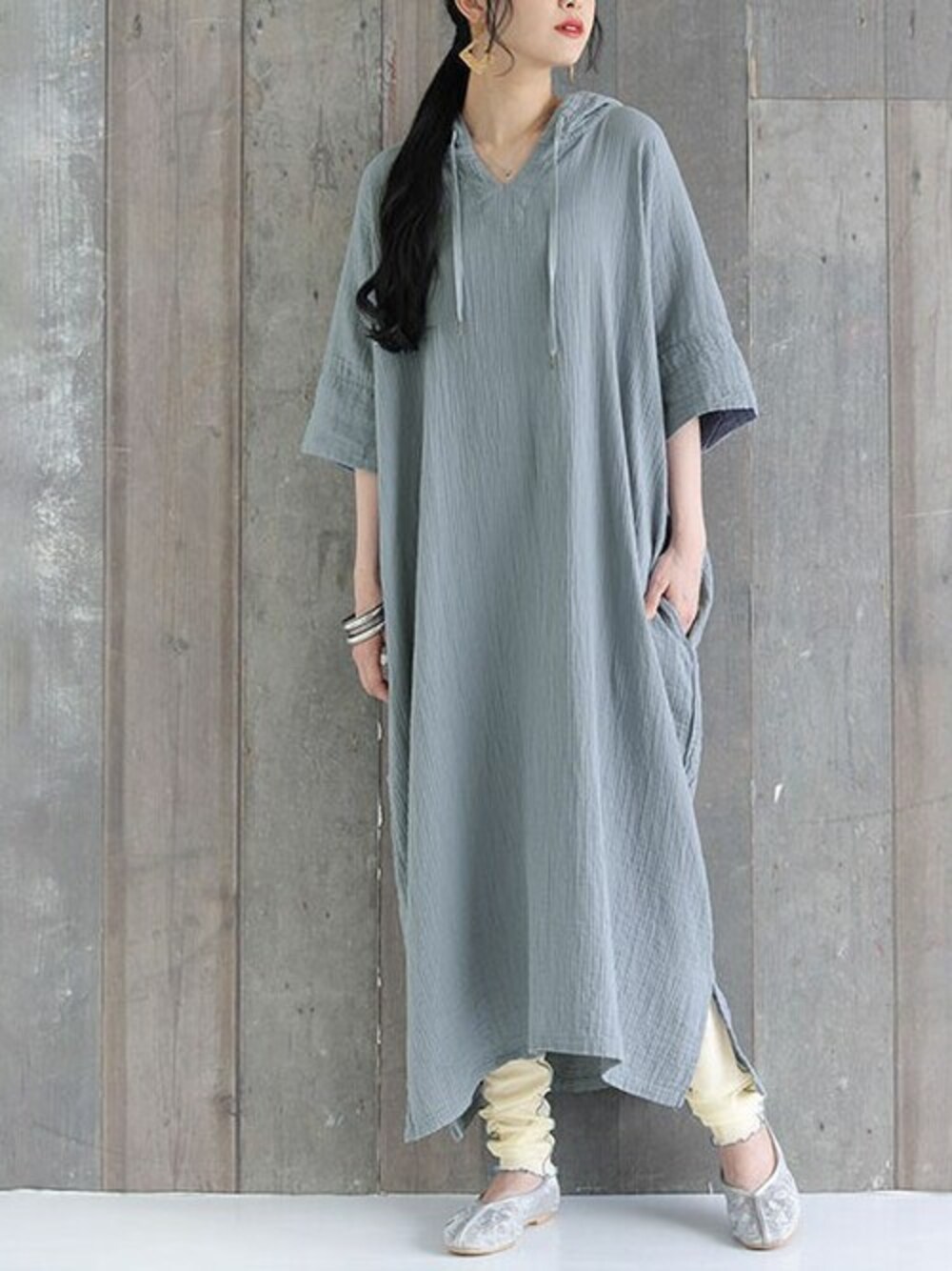 osharewalker staff(osharewalker ZOZO店)のワンピース「【廃盤】『ダブルガーゼフードワンピース』」を使ったコーディネート