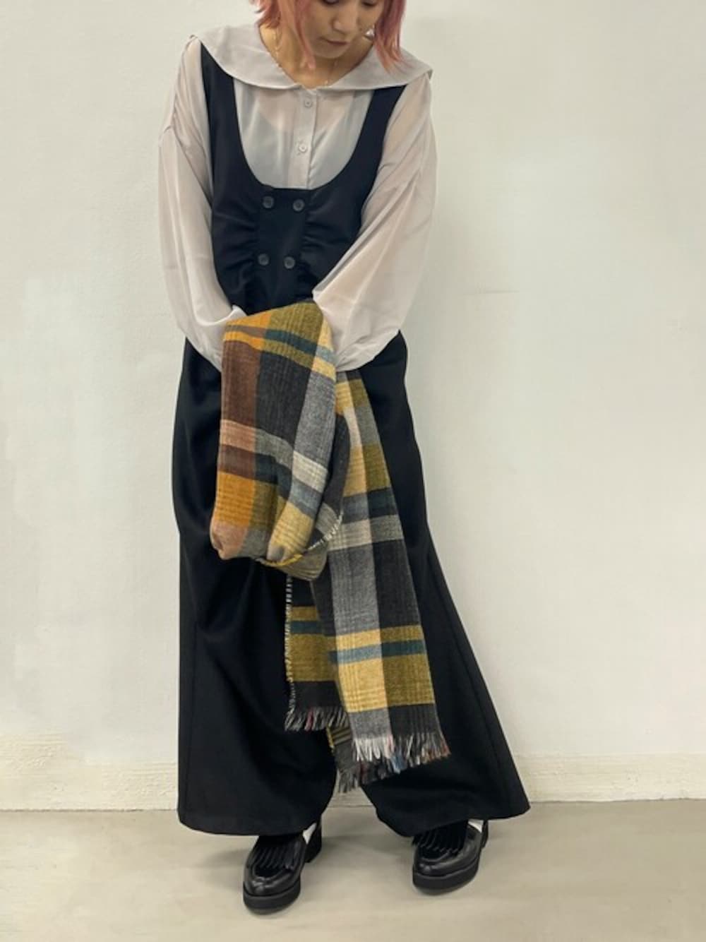 羽織りとしても使えるシアーシャツを サルエルサロペットのインナーに✲ ゆるっと決まるコーデです☆